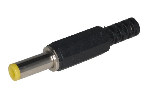 Muški, za jednosmerna napajanja, 5.5mm x 2.5mm, sa žutom zaštitnom glavom i sa uvodnikom