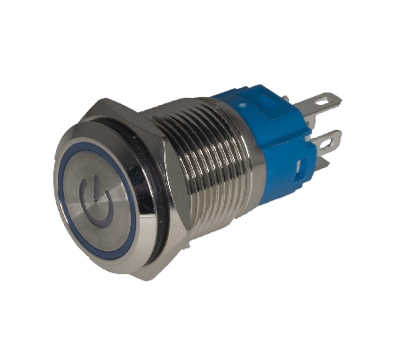 Prekidač, ON/OFF, 16mm, metalni, sa plavom 'angel eye' LED indikacijom, 220VAC, , , , , mm