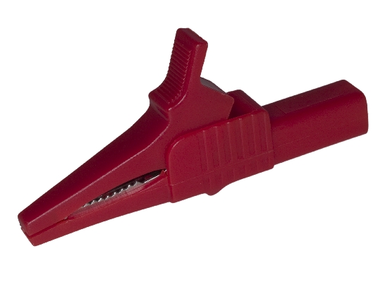 Krokodilka, bakarna, crvena, presvučena plastikom, 32A/1000V sa 4mm priključkom