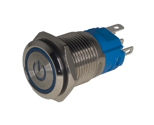 Prekidač, ON/OFF, 16mm, metalni, sa plavom 'angel eye' LED indikacijom, 12VDC, , , , , mm