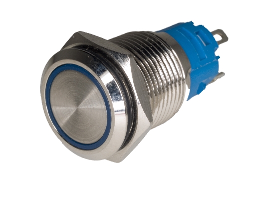 Prekidač, ON/OFF, 16mm, metalni, sa plavom LED indikacijom, 220VAC, , , , , mm