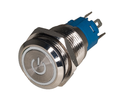 Taster, 1 X ON/OFF, 16mm, metalni, sa belom 'angel eye' LED indikacijom, 220V