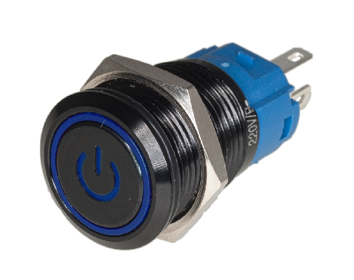 Taster, crno eloksirani, 16mm, plavi LED krug - Angel Eye, 230VAC