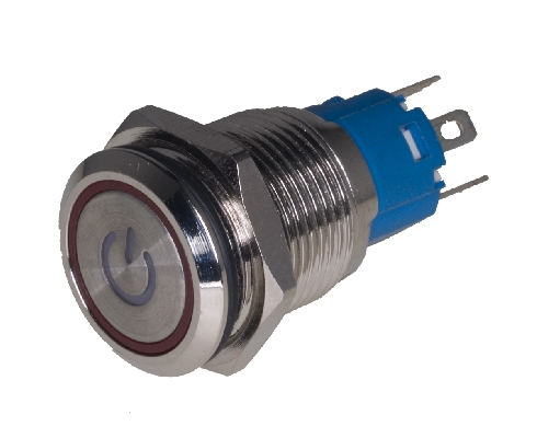 Taster, INOX, 16mm, crveni LED krug - Angel eye, 230VAC