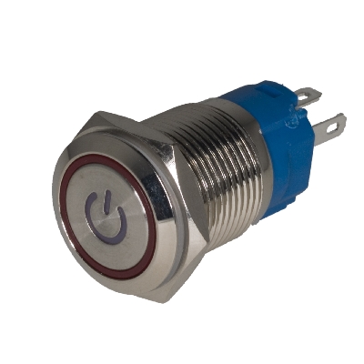 Prekidač, ON/OFF, 16mm, metalni, 5A/230VAC, crvena LED, , , , , mm
