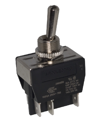 Prekidač, sa ručicom, tri položaja, metalni, ON-ON, DPDT, 250V AC, 16A, Fi=10.8mm