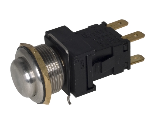 Prekidač-taster, nerđajući čelik, Vandal-proof, IP66, ON-OFF, DPST, 250V AC, 16A, Fi=19.2mm