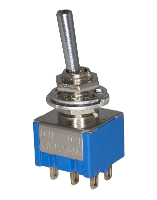 Prekidač sa ručicom, Miyama, Japan, ON-(ON), DPDT, 125V AC, 6A, Fi=5.5mm