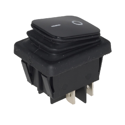 Prekidač, Wipp, crni, IP65, ON-OFF, DPST, 250V AC, 16A, 22x30mm