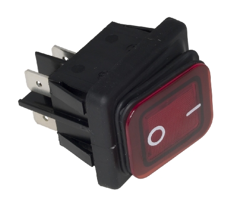 Prekidač, Wipp, crni, IP65, sa crvenom tinjalicom, ON-OFF, DPST, 250V AC, 16A, 22x30mm