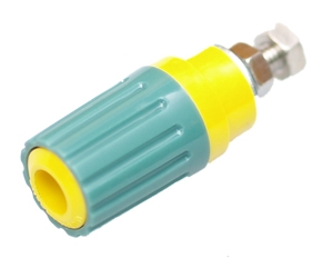 Buksna 4mm, PKI-100, Hirschman, žuto-zelena, 35A/(30VAC/60VDC)