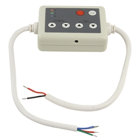 This RGB controller equipment can be used for RGB or single color LED strips. The maximum load is 120W and the input voltage is 12 or 24VDC . This controller requires an external power supply to drive the LED strips. The controller itself does not contain a power supply.