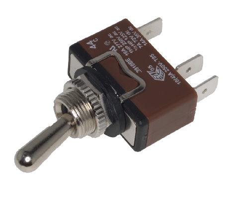 Prekidač, sa ručicom, metalni, ON-ON, SPDT, 250V AC, 16A, Fi=10.8mm