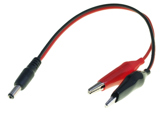 Kabl, muški za jednsmerna napajanja, 5.5 x 2.1mm na dve krokodilke, crvena i crna