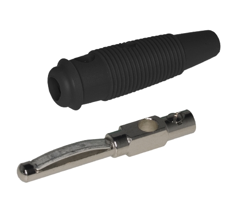 Banana VQ20, 4mm, Hirschman, crna, 16A/60V DC, sa metalnom oprugom, pričvršćenje provodnika na vijak