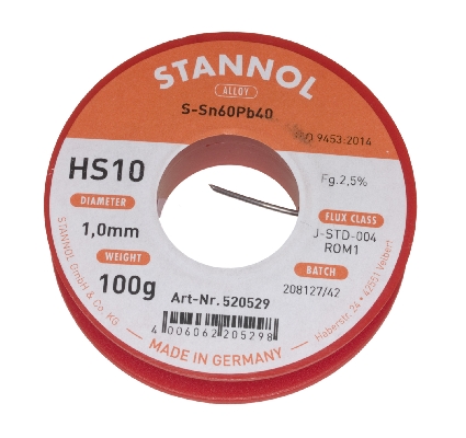 Tinol, sa olovom, 60/40, Stannol, HS10, 2.5% punioc, 1.0mm, 100 grama, Halide activated flux