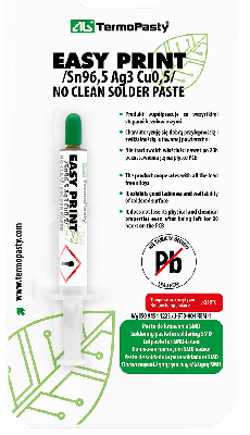 Da li tražite pouzdano rešenje za lemljenje SMD komponenti? Lemna pasta Easy Print /Sn96.5Ag3Cu0.5/ je revolucionarni proizvod bez olova koji se koristi u SMD procesu lemljenja. Naša kalajna lemna pasta je nesumnjivo efikasna i za automatsko i za ručno štampanje.