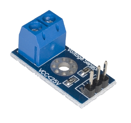 TThis module is based on principle of resistive voltage divider design, can make the red terminal connector input voltage to 5 times smaller.for Arduino analog input voltages up to 5 v, the voltage detection module input voltage not greater than 5Vx5=25V (if using 3.3V systems, input voltage not greater than 3.3Vx5=16.5V). for Arduino AVR chips have 10-bit AD, so this module simulates a resolution of 0.00489V (5V/1023), so the minimum voltage of input voltage detection module is 0.00489Vx5=0.02445V.