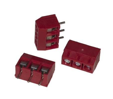 Redna stezaljka, KF301, tropolna, 5mm raster, crvena