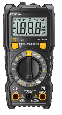 NCV (non-contact voltage), continuity, battery (1.5V/9V) and diode test