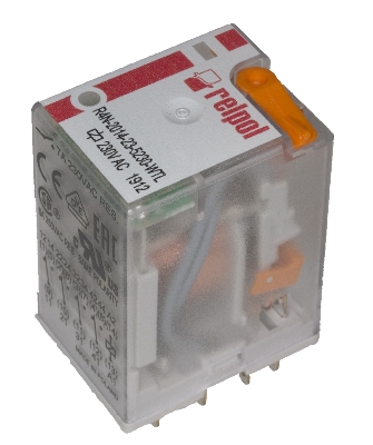 Relej, industrijski, 4 X ON/OFF, 4PDT, 7A, 230 VAC, 16.4kΩ, Relpol, R4N2014-23-5230-WT