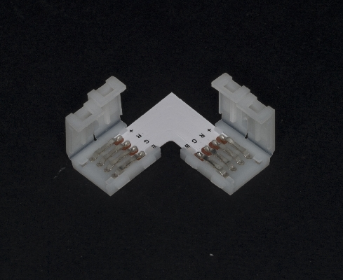 Konektor za LED trake 5050, 4 pina, 10mm širine, za unutrašnju montažu, oblik 'L', pod uglom od 90°,