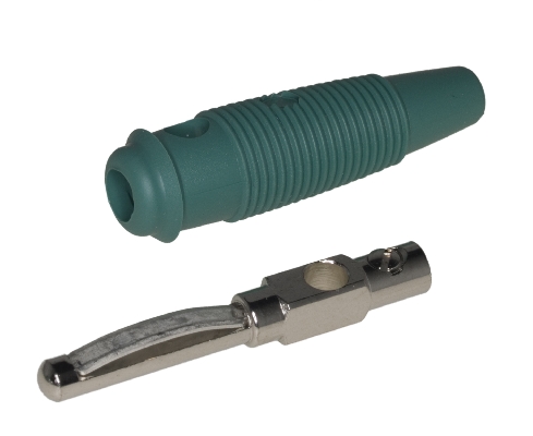 Banana VQ20, 4mm, Hirschman, zelena, 16A/60V DC, sa metalnom oprugom, pričvršćenje provodnika na vij