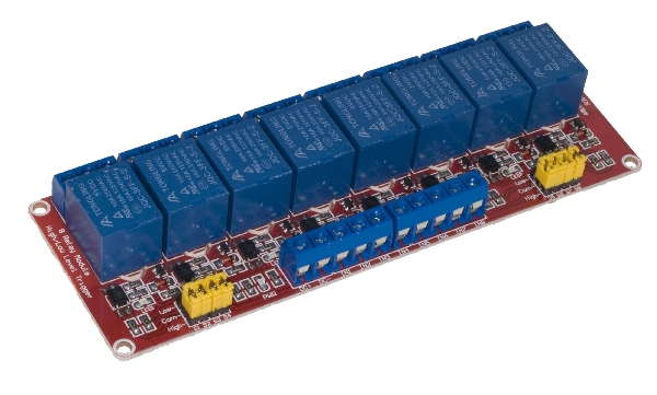 Osmokanalni modul, sa relejom, 5V/10A, sa optokaplerskom zaštitom i Hi/Low pobudom