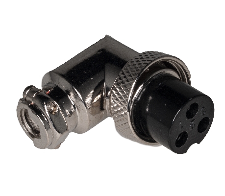 Ženski, GX16 konektor, 3-polni, pod uglom od 90°, za kabl, sa navojem za zatvaranje, 5A/250VAC