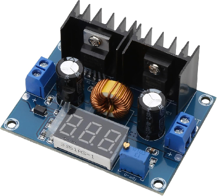 XH-M404 je podesivi DC-DC step-down buck konvertorski modul baziran na integrisanom kolu XL4016E1. Reguliše viši jednosmerni ulazni napon na niži, podesivi jednosmerni izlazni napon. Modul ima 7-segmentni digitalni displej koji prikazuje izlazni napon.