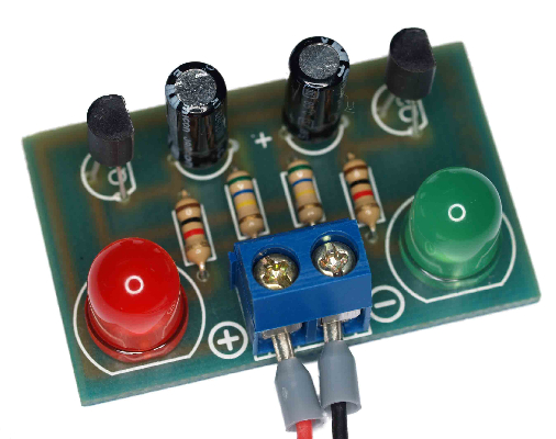 Jedna od osnovnih radnih vežbi za početnike. Migavac – multivibrator sa dva tranzistora i dve LE diode.