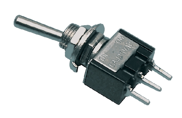 Prekidač sa ručicom, ON-ON, SPDT, 250V AC, 2A, Fi=5.5mm