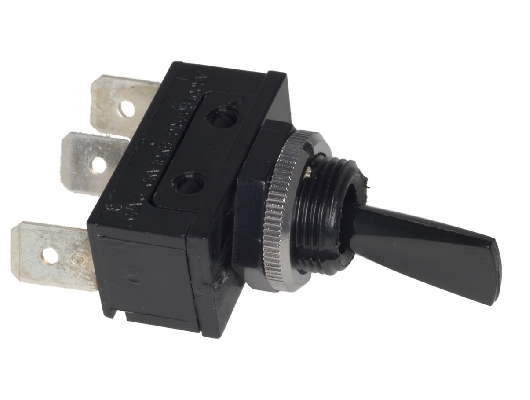 Prekidač, sa pljosnatom ručicom, plastični, ON-ON, SPDT, 250V AC, 16A, Fi=12.7mm