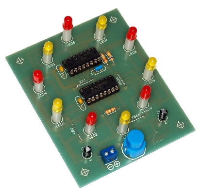 Ovaj elektronski rulet ima deset polja, koja se sastoje od deset LE dioda, u dve boje, crvene i žute. Kada se svetlo zarotira, posle nekoliko krugova staje i svetli samo jedna LE dioda, odnosno kuglica se zaustavila. Igra se kao pravi rulet. Pritisne se taster i svetlo rotira do zaustavljanja i uvek stane na drugi broj. Naravno, u zavisnosti od toga koliko imate sreće, može se desiti da stane i dva puta na isti broj. Verovatnoća za to je jedan prema deset.