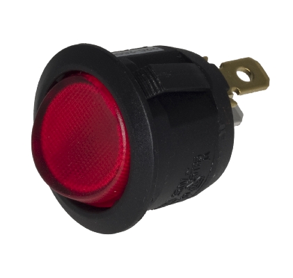 Prekidač, Wipp, okrugli, crvena tinjalica, ON-OFF, SPST, 250V AC, 6A, Fi=20.2mm